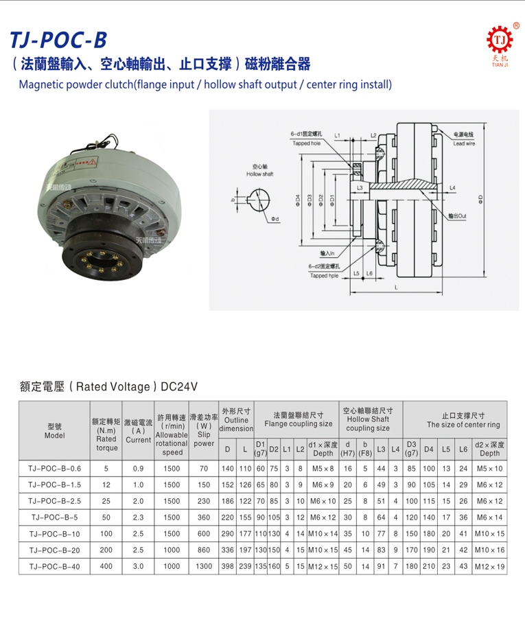 POC-B磁粉離合器廠家類別:磁粉離合器